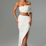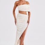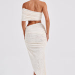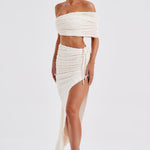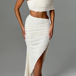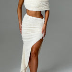 Confeccionada em nosso tecido stretch texturizado que valoriza o corpo, a saia midi Zina apresenta um detalhe de cordão na cintura e barra assimétrica. Combine com a blusa Zina para um look perfeito.