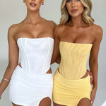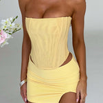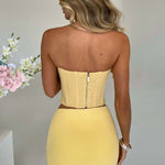 A saia mini está em alta. Alina é nossa saia mini ultra curta, de cintura baixa, feita em um jersey super suave e macio que se molda à sua silhueta. Ela possui uma pequena fenda na saia. Combine a sua com o corpete camisolinha correspondente.