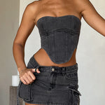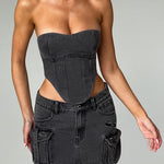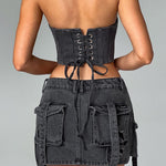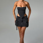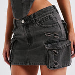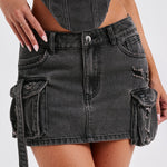 Do denim à perfeição com a saia mini Billie. Nossa nova saia mini de lavagem preta fica um pouco mais baixa nos quadris, com vários bolsos cargo e leve desgastes.