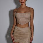 Nova estação, novo conjunto. A saia brilhante Brielle foi feita para combinar com o top Brielle, projetada em nosso tecido de malha especial com detalhes brilhantes e um caimento justo ao corpo como nenhum outro. A saia é franzida em toda a parte com cintura alta e corte mini.