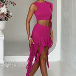 A Ferna é o conjunto que está na mente de todos. Feita de nossa malha dupla premium, esta saia de cintura alta apresenta uma saia super divertida, com detalhes de babados em cascata. Combine com o top Ferna para uma combinação feita no céu.