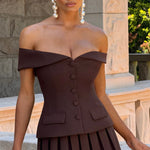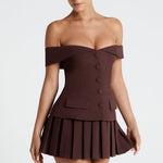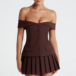 A Saia Mini Gretchen em Marrom Ameixa é uma peça chique e versátil para qualquer guarda-roupa. Projetada em um comprimento mini lisonjeiro com pregas box, esta saia oferece uma silhueta estruturada e feminina. Confeccionada em crepe sem elasticidade, ela cai lindamente enquanto mantém seu apelo sob medida. O ajuste de altura média facilita o estilo, seja para um look mais arrumado ou casual. Combine-a com o Top Blakely em Marrom Ameixa para um visual elegante e coordenado.
