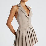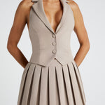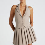 A Saia Mini Gretchen em Taupe é uma peça essencial e chique do guarda-roupa que combina estrutura clássica com estilo moderno. Feita de crepe sem elasticidade, esta saia mini de cintura média apresenta pregas box nítidas que adicionam um toque divertido, mas polido, à sua silhueta. Combine com o top Philippa para um look neutro perfeito.