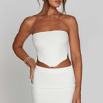 Tricot, mas faça ser verão. Nós adoramos a nossa suave e bonita saia mini Jaz, feita em malha canelada elástica que se ajusta ao seu corpo como uma luva. Com um ajuste de cintura alta, combine a sua com o top Jaz correspondente, ondas soltas e joias douradas.