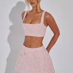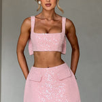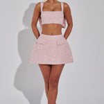 Tanto clássica quanto glamourosa em medidas iguais, você vai se apaixonar pela saia mini Kiri. Feita em nosso luxuoso tecido de tweed com lantejoulas, ela apresenta um ajuste de cintura média com uma saia em forma de bolha divertida e bolsos falsos com aba na frente. Combine com a saia mini Kira.