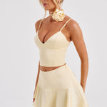 A Louisa é a mini do momento, parte do conjunto dos sonhos que você vai querer usar repetidamente. Confeccionada em nosso luxuoso cetim stretch com um brilho deslumbrante, este design de cintura alta apresenta um detalhe de babado assimétrico que flui enquanto você caminha. Combine com o top Louisa e uma divertida corsage de flores no pescoço.