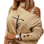 Atemporal, sofisticado e com detalhes luxuosos que fazem a diferença. Sweater Elegance  é a peça perfeita para quem busca estilo e conforto em um único look. Seu design assimétrico com ombro à mostra e alça com detalhe dourado traz um toque de glamour à sua produção.