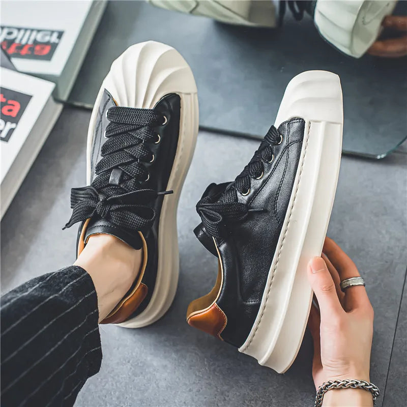 Confeccionados em couro premium, estes tênis apresentam uma sola plataforma ousada para um toque de estilo urbano, enquanto proporcionam conforto excepcional e durabilidade no seu dia a dia!