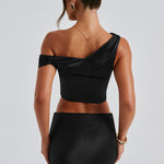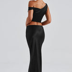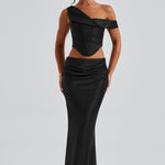 Oh, ela é luxo! Feita em nosso cetim stretch premium, Audra exala sofisticação, com um estilo assimétrico off the shoulder e detalhes de alça torcida. O top tem uma barra moldada e um corpete interno com estrutura para definir a silhueta. Combine com a saia Bernadette para um visual sonhador e luxuoso.