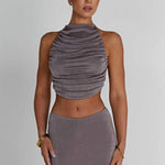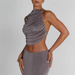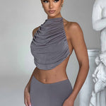 Sinta-se radiante e deslumbrante no top Fifi, feito em nosso jersey de alto brilho que possui um lindo brilho. Este design sem costas se fecha com um laço nas costas e é completo com um decote alto e um design drapeado por toda a frente. Combine o seu com a saia Fifi combinando e um nó elegante.