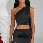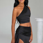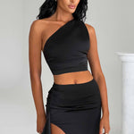 Abraçe sua elegância com o top Halsey, confeccionado em nosso luxuoso tecido de cetim que cai lindamente sobre o corpo. Com detalhe de um ombro e comprimento cropped, combine o seu com a saia Halsey para o próximo grande encontro na sua agenda.