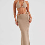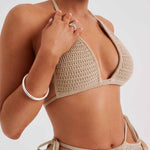 Inspirado em nosso best-seller Arabella Maxi, dê boas-vindas ao top Jia, um bralet elástico e modelador feito de nosso crochê premium. Com um decote profundo e design sem costas com amarrações, é uma combinação perfeita quando usado com a saia Jia.