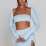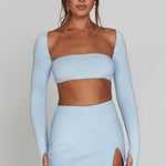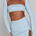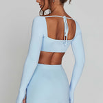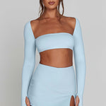 Todos os olhares em você, amor. O top cropped Lucianna é cortado do nosso tecido de malha personalizado que é macio e elástico. Com um decote quadrado e um ajuste que abraça o corpo, as mangas longas são completadas com furos para os polegares. Use o seu com a saia Zima combinando e brilhe a noite toda.