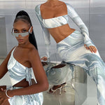 Todos os olhares em você, querida. O top cropped Lucianna é cortado de nossa malha personalizada que é macia, elástica e super brilhante. Com um decote quadrado e ajuste que valoriza o corpo, as mangas longas têm aberturas para os polegares. Use o seu com a saia Zima combinando e brilhe a noite toda.
