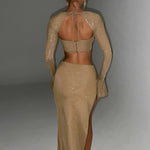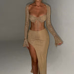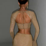 Priscilla é nosso novo top bralet ultra lisonjeiro, projetado em nossa malha elástica luxuosa com mangas longas ligeiramente transparentes. Cada barra da manga se abre suavemente com um fechamento de laço, enquanto os copos são estruturados para ajudar a levantar e acentuar seu decote. O visual é completado com um detalhe de laço na frente do busto.