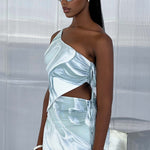 Capture a energia da garota IT com o cropped Stormi, projetado com um corte assimétrico moderno e uma alça de ombro. O top é complementado com um detalhe de laço de um lado e fica perfeito combinado com a mini saia Stormi correspondente, acessórios metálicos e saltos minimalistas.