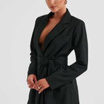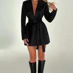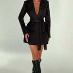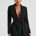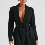 A alfaiataria de luxo nunca teve uma aparência tão boa quanto no vestido blazer Heather, um mini com mangas longas e uma forma suave e estruturada, com lapela e cinto amarrado que acentua a cintura. Use o seu com ondas soltas e botas até o joelho.