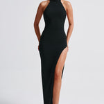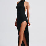Um decote nas costas sexy e baixo com uma gola alta elegante é o que faz do Adalia o nosso tipo de vestido. Cortado em nosso crepe stretch premium, o maxi é super ajustado com uma fenda alta na coxa para mostrar a quantidade certa de perna. Mantenha o visual chique com saltos pretos e uma bolsa pequena.