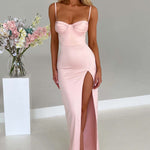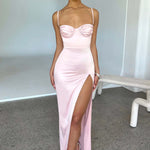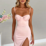 Encontre seu vestido para sempre no Alora, nosso vestido mais deslumbrante feito para cada evento especial em seu calendário nesta temporada. Projetado em nosso luxuoso cetim pesado, este estilo elástico é cortado próximo ao corpo para um visual super ajustado. O vestido é completo com lindas copas franzidas que são com aro, além de uma fenda alta na coxa.