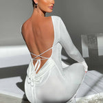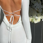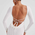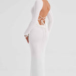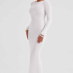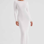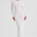 Sinta-se escultural e sexy no vestido maxi Anastassia, seu novo vestido dos sonhos com mangas longas e uma costa de tirar o fôlego. Feito de nosso tecido exclusivo de dupla camada, use o seu com ondas soltas e saltos plataforma.
