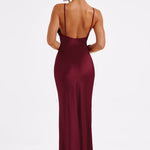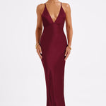 Feito em nosso luxuoso cetim martelado com corte enviesado e um brilho deslumbrante, o vestido maxi Anja se ajusta ao corpo para um caimento bonito. O vestido perfeito para criar memórias, apresenta um decote em V profundo e alças delicadas.