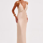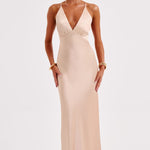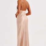 Feito em nosso super luxuoso cetim amassado cortado na diagonal, com um brilho deslumbrante, o vestido maxi Anja se ajusta ao corpo para um caimento bonito. O vestido perfeito para criar memórias, apresenta um decote em V profundo e alças delicadas.