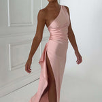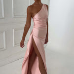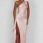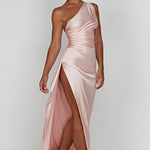 Sinta-se como a deusa que você é no Ariel, nosso vestido premium feito de cetim leve e luxuoso com elasticidade para abraçar suas curvas. Com detalhes drapeados e design de um ombro, o vestido maxi arrasta no chão e é completado com uma fenda alta na coxa. Estilize o seu com cabelo liso, uma bolsa pequena e mules de salto.