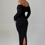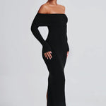 Tricôs leves são A garota. Adoramos nosso maxi Beverley macio e bonito, feito em tricot premium que se ajusta ao seu corpo como uma luva. Apresentando um estilo off the shoulder com um amplo painel bardot, mangas longas ajustadas que se alargam no punho e uma pequena fenda na parte de trás da saia, combine o seu com ondas soltas e descontraídas e joias douradas.