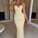 A forma suave e romântica de Celine é feita para um verão sem fim. Feito em nosso jersey canelado texturizado super macio que abraça o corpo, este vestido maxi arrasta no chão e apresenta recortes na cintura lateral e nas costas. O visual é completado com copas com aro para realçar o seu busto.