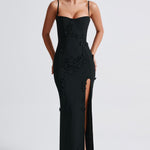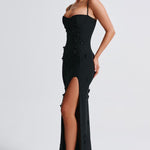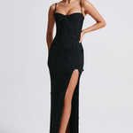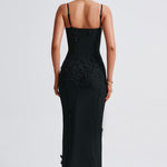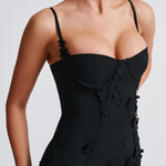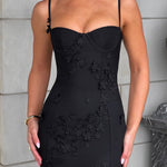 Conheça Dalary... Você pediu, nós entregamos!! Prometemos que você não está sonhando! Este vestido único é a perfeição do estilo soft girl, feito em uma delicada malha transparente com apliques de flores divertidos, costurados à mão individualmente, espalhados pelo corpo. Com um busto moldado para emoldurar seu peito e uma fenda alta na coxa, este vestido se ajusta aos contornos do seu corpo para um caimento como uma segunda pele.