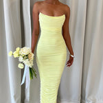 Tudo é sobre cor nesta temporada, e o vestido Demi na cor limão é feito para jantares glamourosos e coquetéis com as amigas. Feito de nosso tecido de power mesh super macio, forrado em jersey duplo, o Demi modela o corpo de dentro para fora e age como shapewear. Adoramos o busto estruturado sem alças que proporciona um decote incrível, além da fenda lateral para mostrar as pernas. Use o seu com um nó elegante, joias minimalistas e seus saltos mais altos.