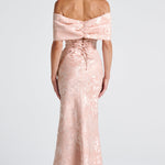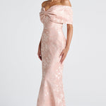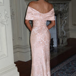 Chame a atenção com o Vestido Maxi Emberly, uma mistura dos sonhos de romance e elegância. Esta beleza em corte enviesado se ajusta às suas curvas, enquanto as costas com amarração garantem um caimento impecável. O decote bardot off-the-shoulder com laço destaca seu decote com um charme sem esforço. Feito de tecido jacquard floral, esta peça maxi é o epítome da feminilidade moderna. Perfeito para casamentos, soirées e todos os momentos intermediários.