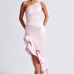Crie novas memórias com Esmeraya, desde o momento em que você diz SIM até o momento em que você diz EU ACEITO. O vestido mais elegante e deslumbrante para te vestir em todos os seus eventos especiais, este design em tom champagne é feito de nosso luxuoso cetim stretch, com sonhadoras camadas duplas e detalhes franzidos. Ele é completo com um ombro estilizado e alças ajustáveis para um ajuste perfeito.