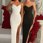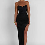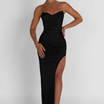 Sinta-se super esculpida no Giovanna, o glamouroso novo maxi que garantirá que você faça uma entrada triunfal. Cortado em nossa malha elástica premium que proporciona a silhueta dos sonhos, este design sexy tem um corpete com estrutura para adicionar forma, copos pontudos e uma fenda alta na coxa.