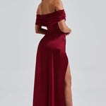 Saindo? Conheça Gwendolyn, seu novo vestido favorito feito de nosso luxuoso tecido de cetim stretch. Com um corpete interno com estrutura para uma cintura definida, o design apresenta um decote bardot franzido com detalhes de pregas no corpo. A saia cai em um elegante comprimento maxi, detalhada com um estilo envolvente e uma fenda alta na coxa.