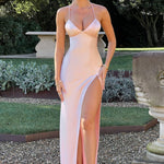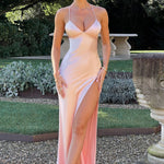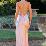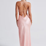 Se você está procurando uma silhueta super suave e romântica que se ajusta ao corpo e realça sua figura, conheça o vestido maxi Isobel. Feito de nosso cetim macio e sedoso com corte enviesado, Isobel apresenta um decote profundo, costas super baixas com alças amarradas e uma fenda alta na coxa.