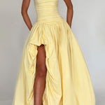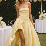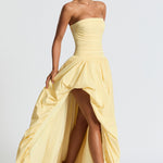 Delicie-se com a elegância luxuosa do Vestido Maxi Jillian em Limão. Desde seu comprimento maxi dramático e decote strapless até sua cintura baixa e corpete franzido, este vestido exala sofisticação. As costas com amarração adicionam um toque de atração, enquanto a saia volumosa e a fenda alta na coxa oferecem um senso de drama. Eleve qualquer ocasião com esta peça exclusiva.