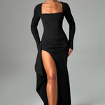 Jordana é um clássico atemporal que você vai amar e usar para sempre. Feito em nosso crepe stretch premium que se ajusta como uma segunda pele, este maxi chique tem mangas longas com punhos flare, detalhe de pregas na cintura e uma fenda drapeada até a coxa. Combine com ondas glamourosas, uma bolsa metálica e mules ou plataformas de salto.