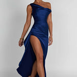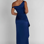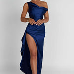 Clássico, glamouroso e super romântico, o vestido maxi Juliene é a estrela desta temporada. Cortado em nosso luxuoso cetim com corte enviesado que ajusta a silhueta, mas também drapeia lindamente, este design apresenta um corpete embutido para definir a cintura, um decote assimétrico e detalhes franzidos com uma fenda alta na coxa. Um detalhe de drapeado cai de um lado para fazer este vestido parecer super elevado e especial.