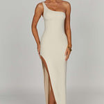Com forro duplo e uma sensação de segunda pele super macia, nosso novo vestido maxi Londres é perfeito para usar repetidamente. Este vestido oferece elasticidade e se ajusta ao corpo para o seu melhor caimento. Completo com uma alça de um ombro e uma sexy fenda alta na coxa, combine o seu com mules e joias douradas ou com um blazer oversized e óculos de sol estilosos.