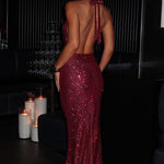 Você brilhará a noite toda no vestido maxi Lorena. Um design luxuoso de rede de lantejoulas com uma aparência levemente transparente, este vestido é forrado em malha e apresenta alças halter com um decote baixo e costas cavadas. Ele cai lindamente com uma costura diagonal na saia. Combine com uma maquiagem radiante e cabelo liso.