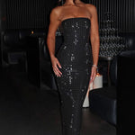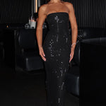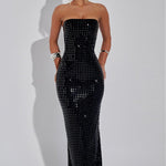 Apresentamos o único design que você vai querer usar para aquelas noites decadentes. Um estilo que se tornará um dos seus favoritos para ocasiões, Neriah é um modelo maxi feito com nosso luxuoso tecido de malha elástica que se ajusta em todos os lugares certos. Com um decote elegante sem alças e uma fenda nas costas para facilitar o uso, os detalhes de strass garantem brilho a noite toda.