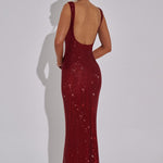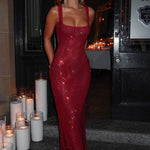 Seja notada com o deslumbrante Vestido Maxi Petra na rica cor vinho! Confeccionado em tule elástico premium, este vestido apresenta aplicações de strass hotfix para um toque de glamour. Totalmente forrado com malha, oferece uma aparência semi-transparente e um decote quadrado que valoriza o corpo. As costas com decote profundo e o fechamento com zíper invisível completam o visual. Perfeito para qualquer evento, este vestido vai te proporcionar um look de arrasar!