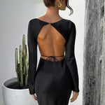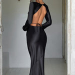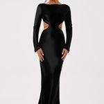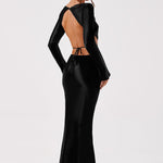 Todos os olhares sobre você no Rafi, nosso vestido sirena que vai virar cabeças nesta temporada de festas. Com um clássico decote alto e mangas longas, este deslumbrante vestido tem um costas super baixa e detalhes de amarração. Feito em nosso cetim com corte enviesado, o Rafi se ajusta lindamente sobre a figura para um acabamento elegante. Use-o com cabelo liso e maquiagem radiante.