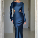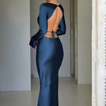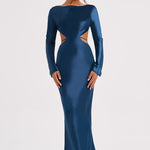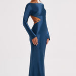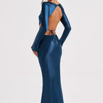 Todos os olhares em você com o Rafi, nosso vestido sirene que vai chamar a atenção nesta temporada de festas. Com um clássico decote alto e mangas longas, este deslumbrante vestido tem um super decote nas costas e detalhe de amarração. Feito em nosso cetim cortado em viés, o Rafi se ajusta lindamente à figura para um acabamento elegante. Use-o com cabelo liso e maquiagem radiante.