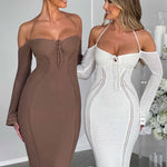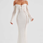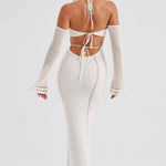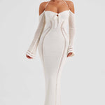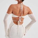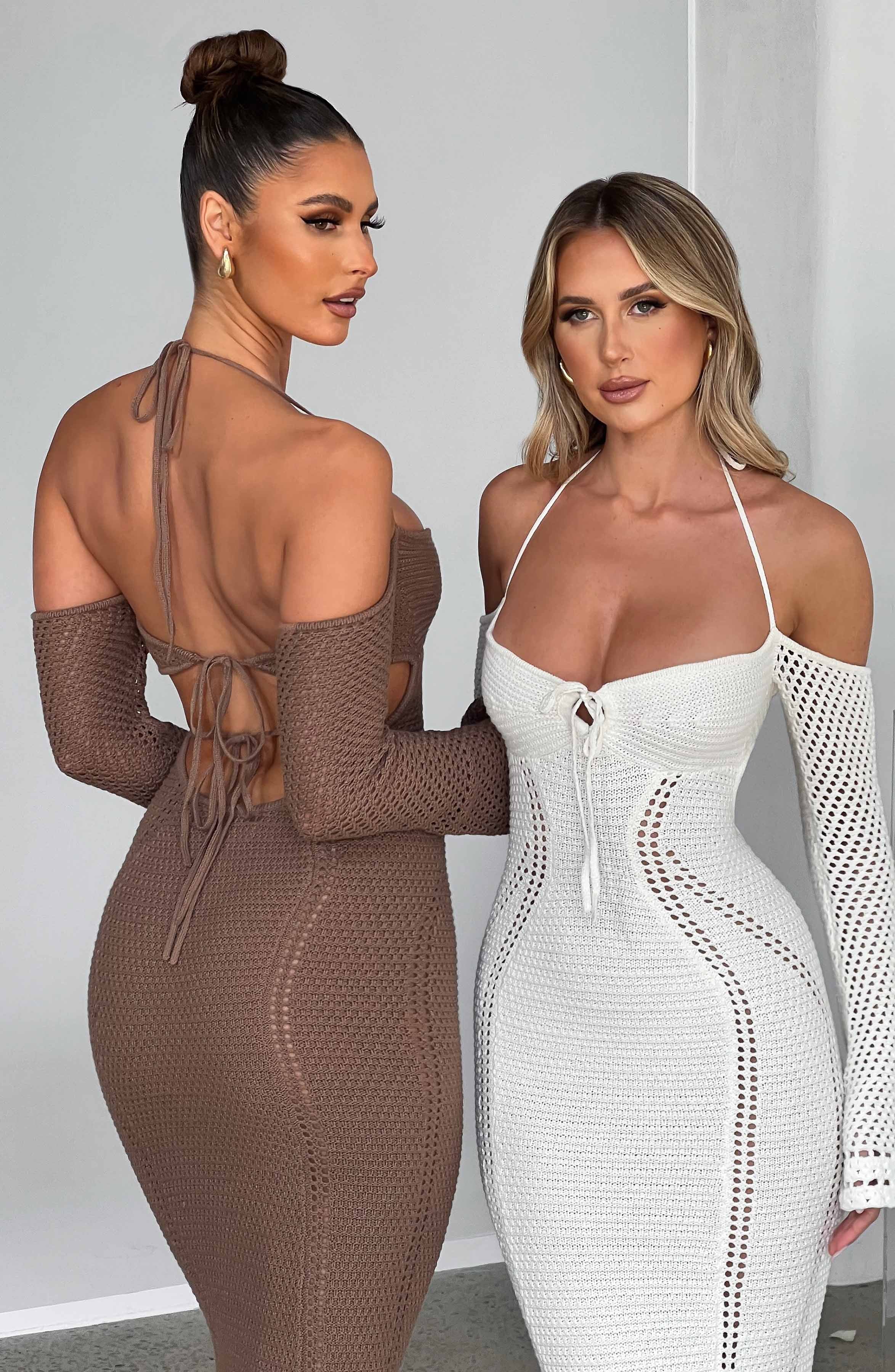 O deslumbrante vestido de crochê Samariah certamente será o seu novo favorito, feito em nosso suave tricô de crochê com um leve stretch que se molda à sua figura. Com mangas longas, estilo off the shoulder e um detalhe de laço no busto, use o seu com mules de salto e ondas elegantes.