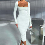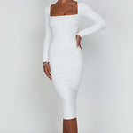 Sinta-se elegante, sexy e esculpida no vestido maxi Wren, feito em nosso jersey de camada dupla característico que abraça sua figura como uma luva. Com um decote quadrado super lisonjeiro, mangas longas e detalhes franzidos por toda parte, estilize o seu com um coque elegante, saltos tonais e acessórios metálicos modernos.