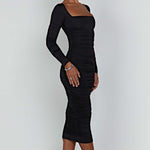 Sinta-se elegante, sexy e escultural no vestido maxi Wren, feito em nosso jersey de camada dupla, que se ajusta à sua figura como uma luva. Com um decote quadrado super lisonjeiro, mangas longas e detalhes franzidos por toda parte, estilize o seu com um coque elegante, saltos tonais e acessórios metálicos legais.