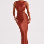 Mantenha-os olhando com o vestido maxi Yves, confeccionado em cetim de corte enviesado premium que se ajusta lindamente à figura para a silhueta dos seus sonhos. Com um moderno decote alto e um corte nas costas que valoriza, combine-o com plataformas e um cabelo preso suave.