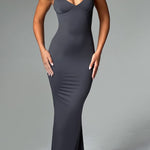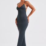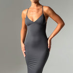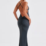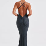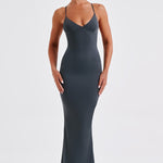 Apresentamos Zelda, o vestido para confirmar presença com um 'sim'. O tecido super leve e elástico se sente como uma segunda pele, moldando-se às suas curvas para a silhueta dos sonhos. O design maxi é completado com uma saia rodada, copos triangulares, alças cruzadas e um impressionante decote em V profundo nas costas com detalhes franzidos no bumbum.